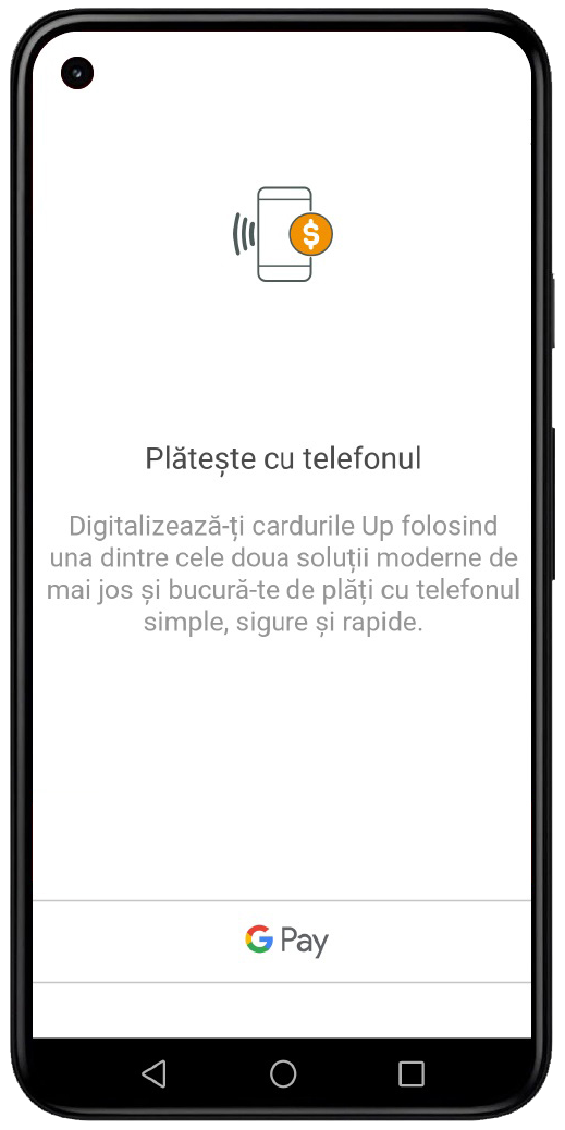 - Google Pay: o soluție compatibilă cu majoritatea dispozitivelor mobile Android, dotate cu funcționalitatea NFC și securizate cu model grafic, PIN, parola, amprentă sau recunoaștere facială.
